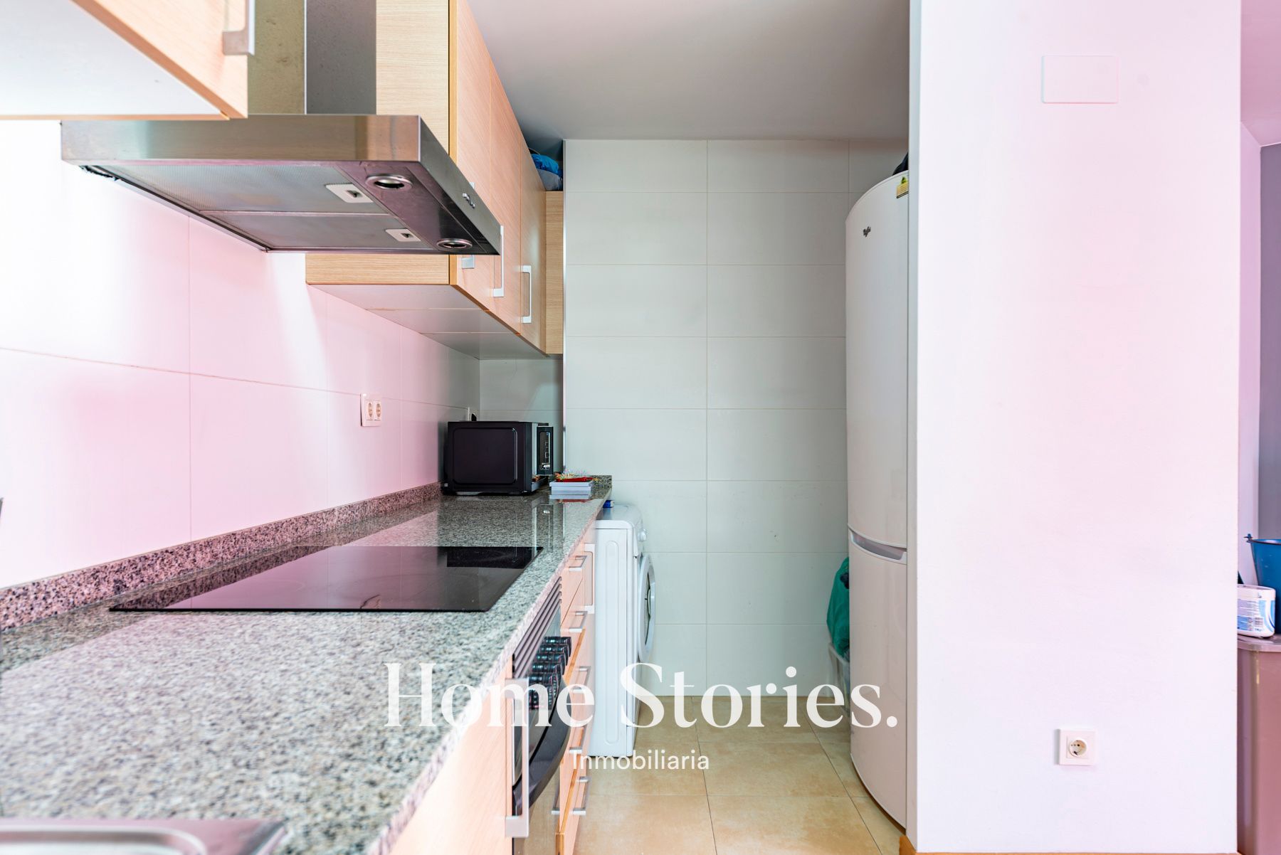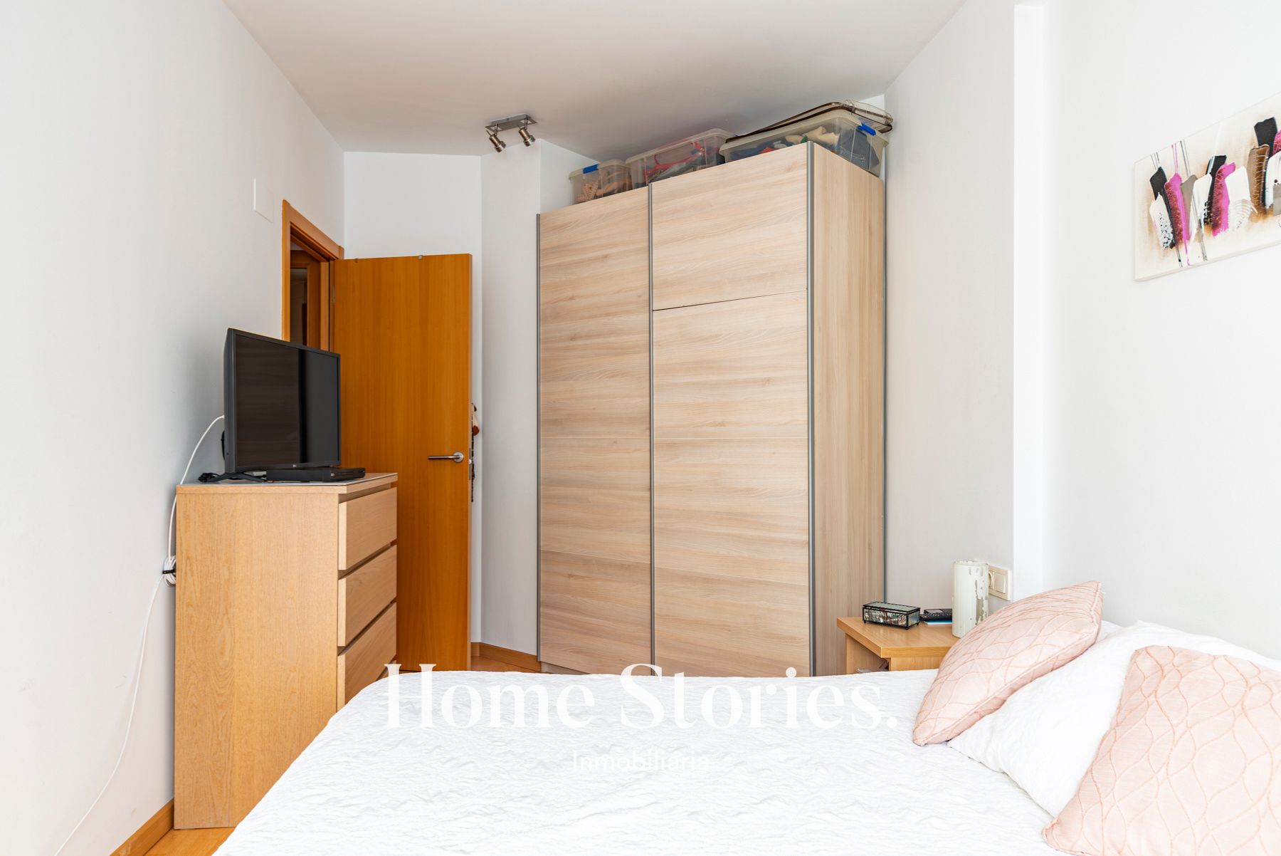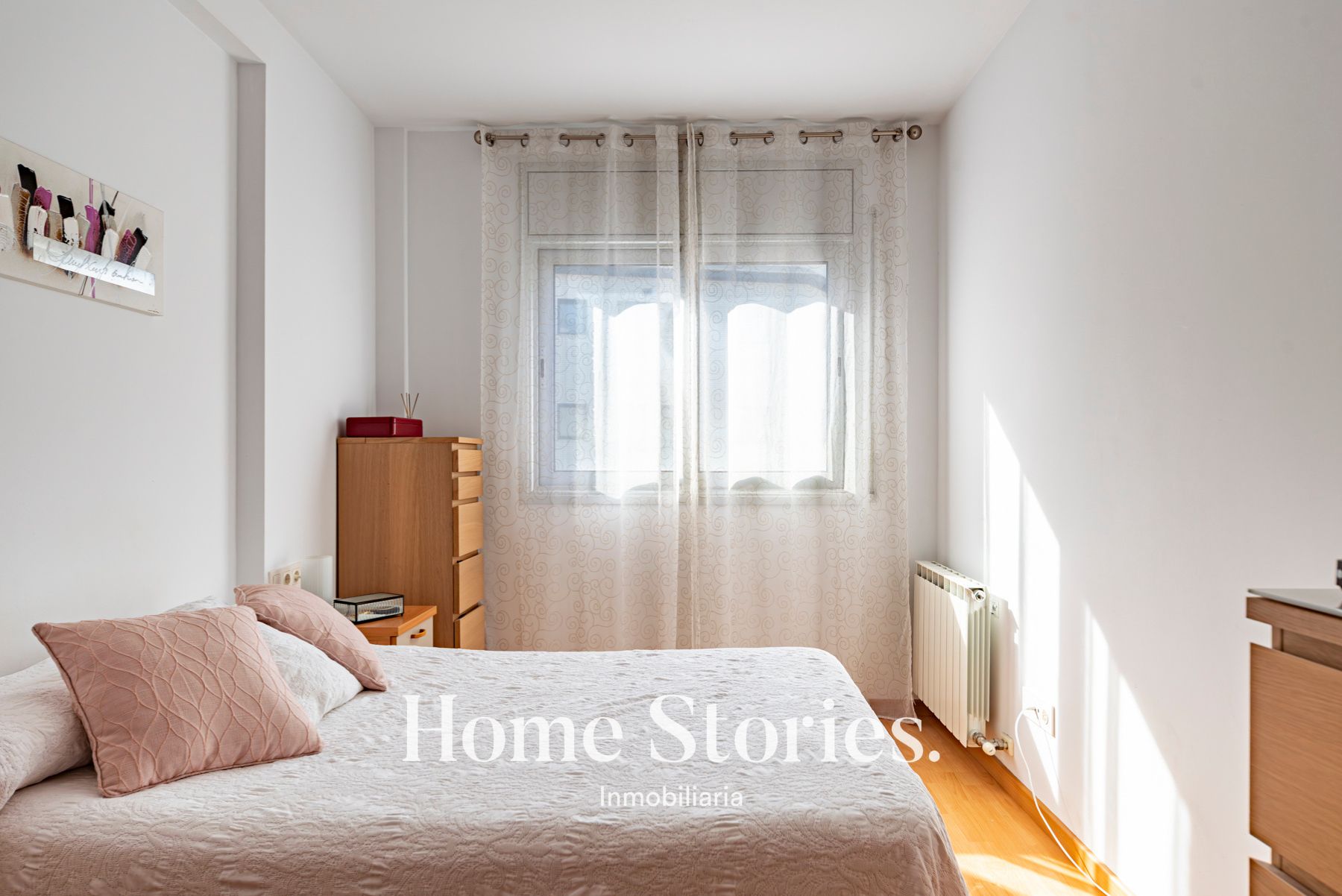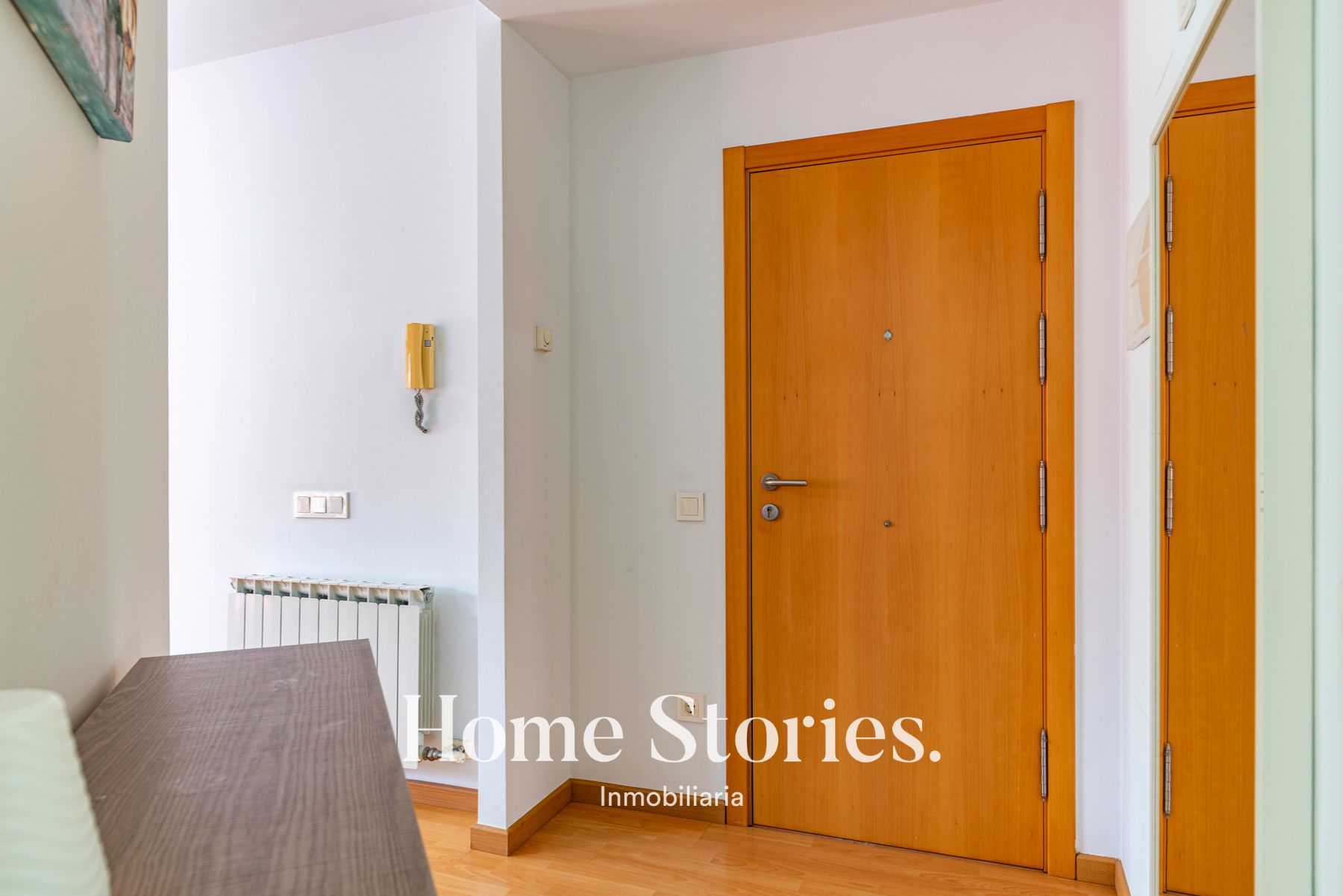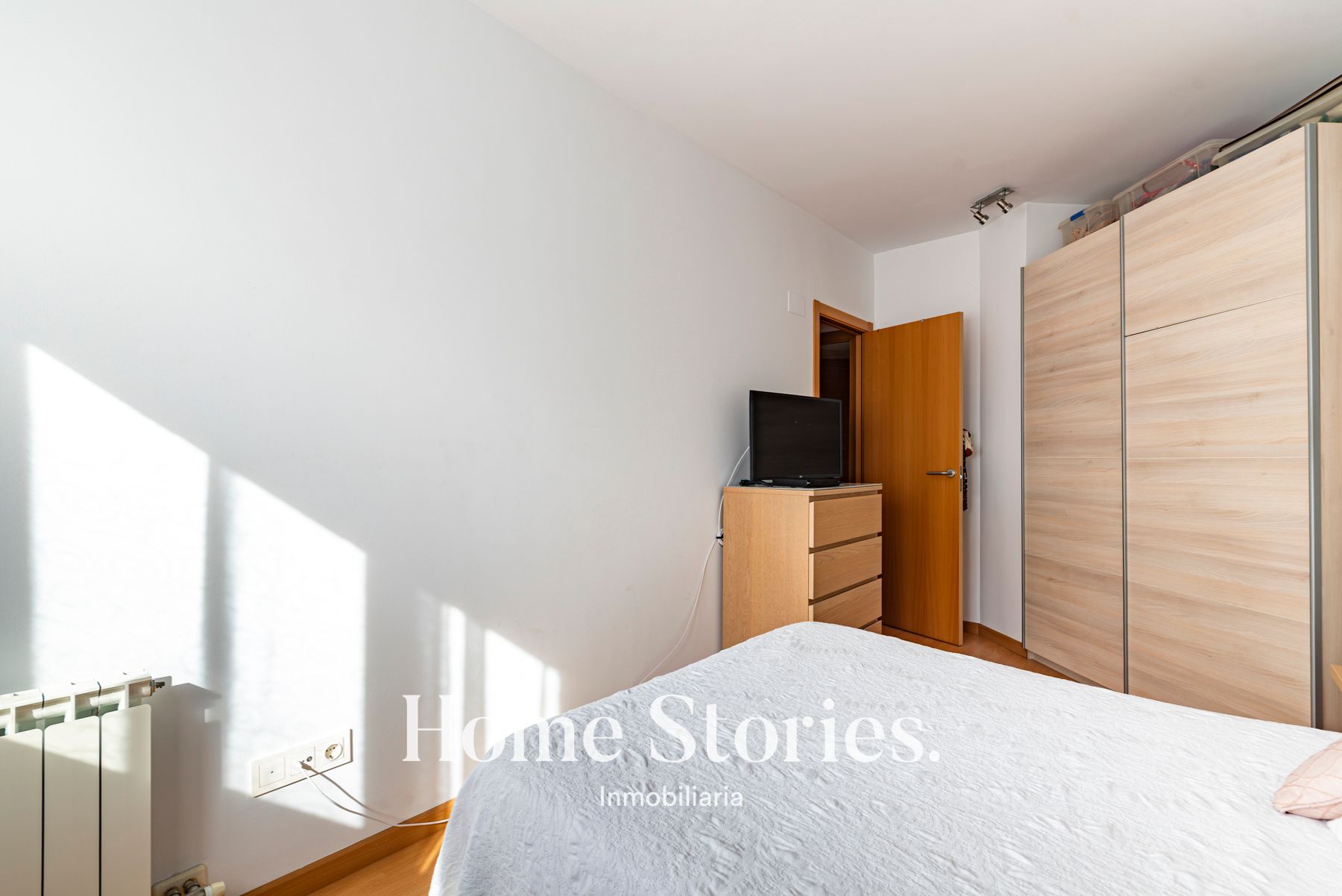 El piso dispone de 63 m² construidos muy bien aprovechados, con una distribución funcional: dos dormitorios (uno doble y otro individual), un salón-comedor con acceso a un pequeño balcón, cocina americana y un baño completo. Se conserva en muy buen estado y destaca por su luz natural.