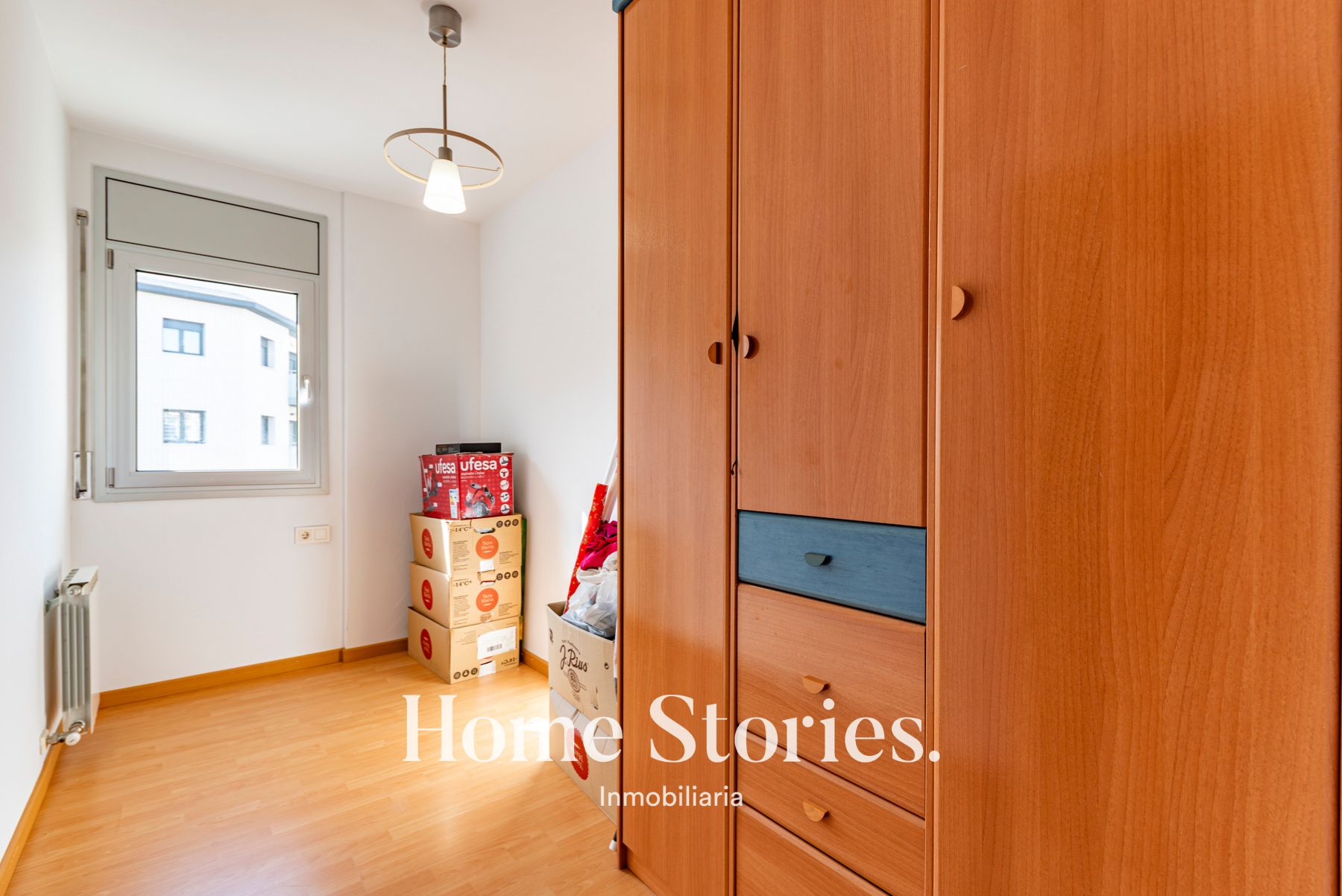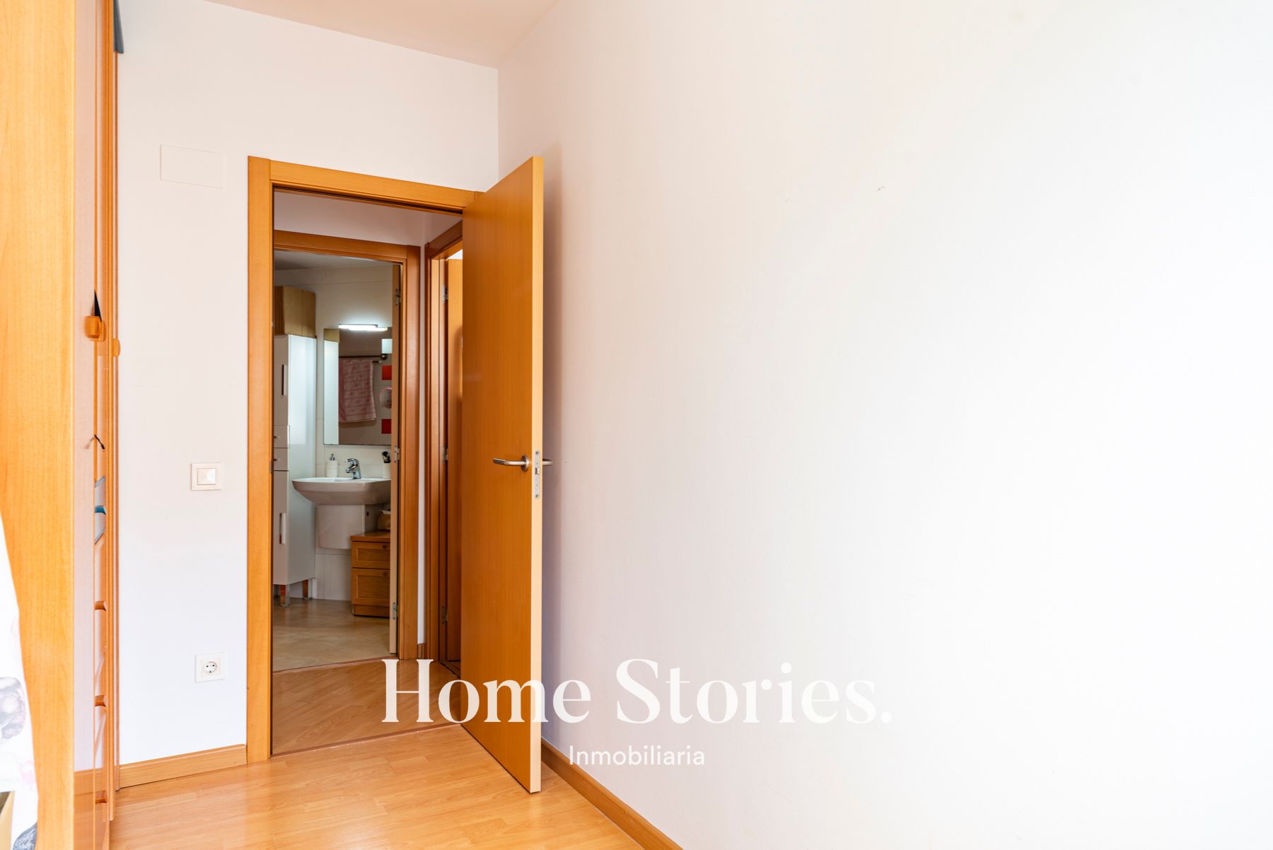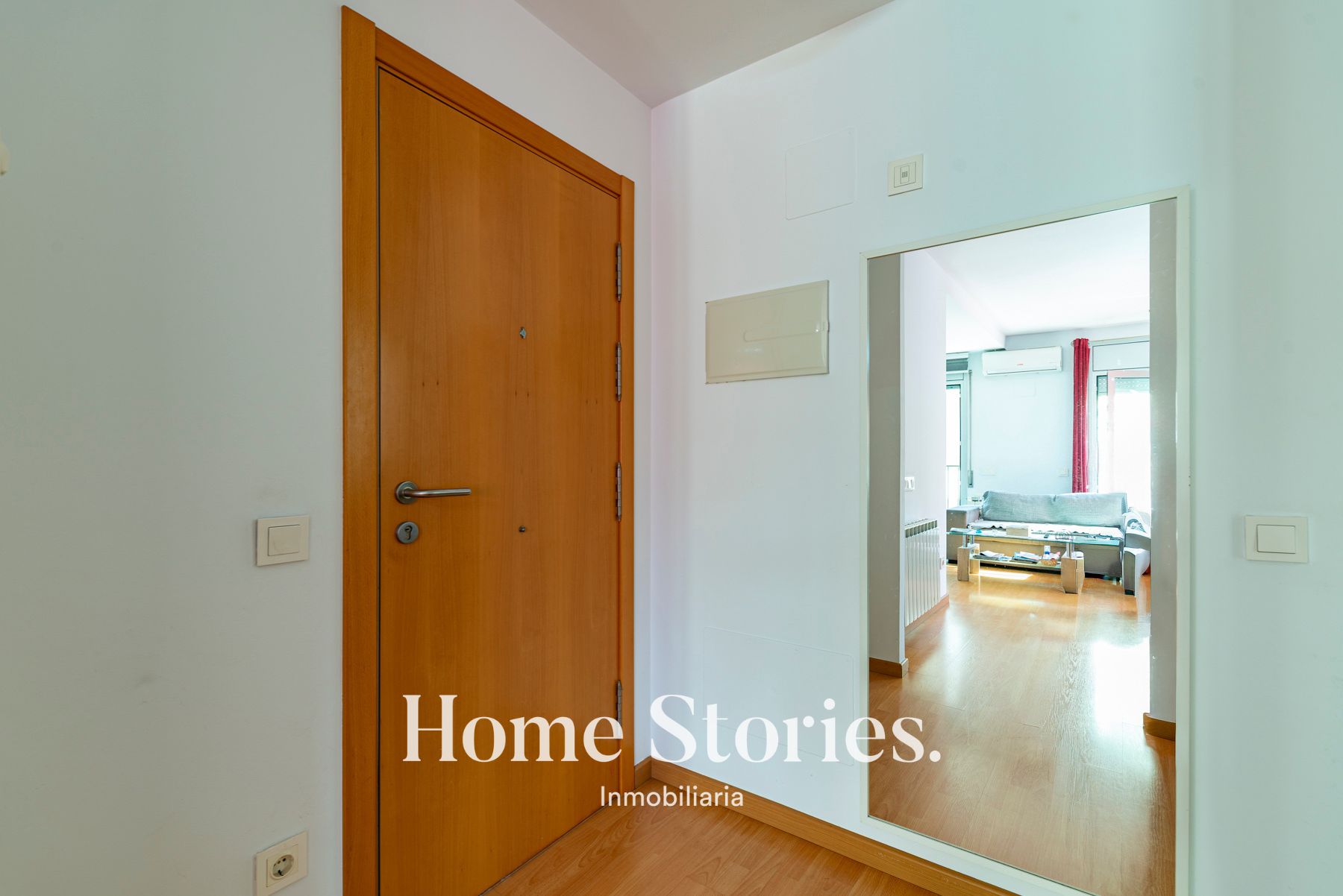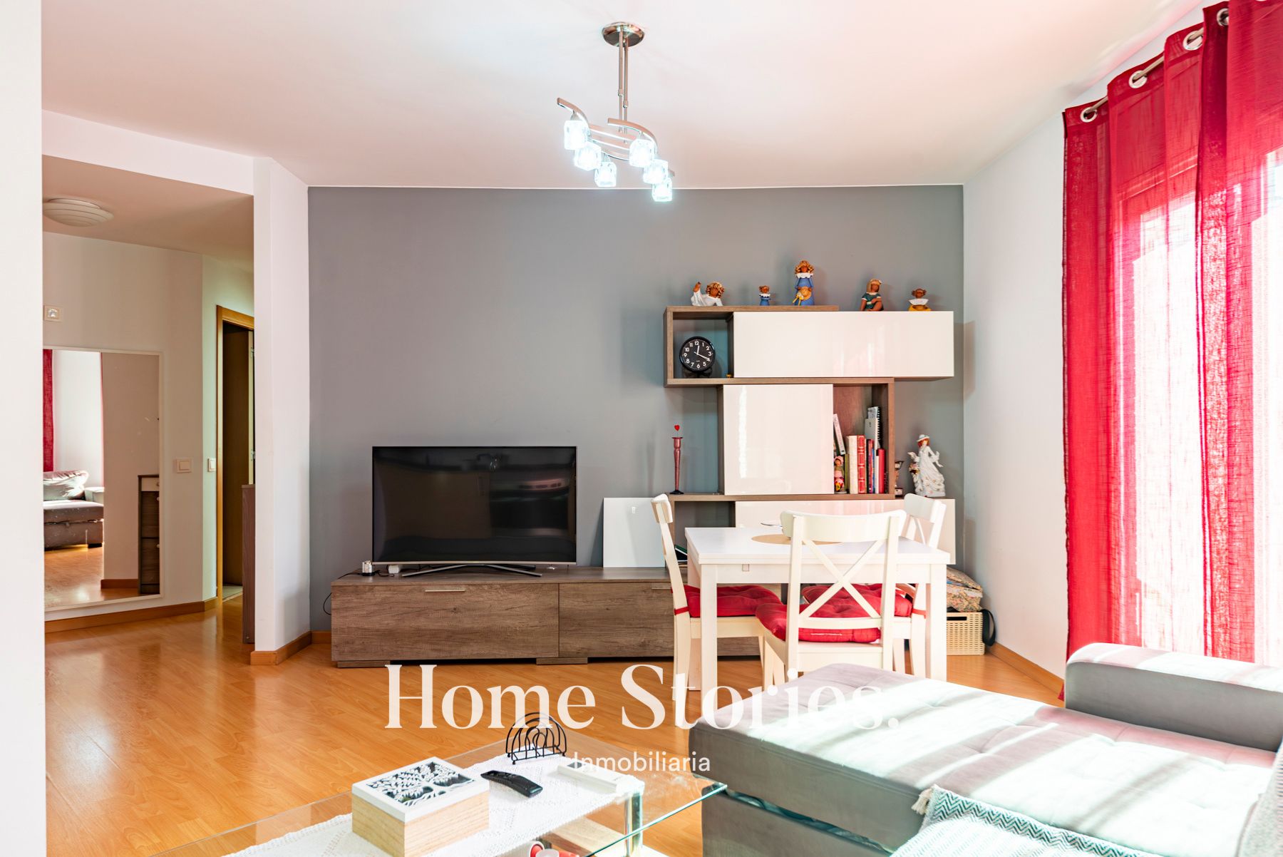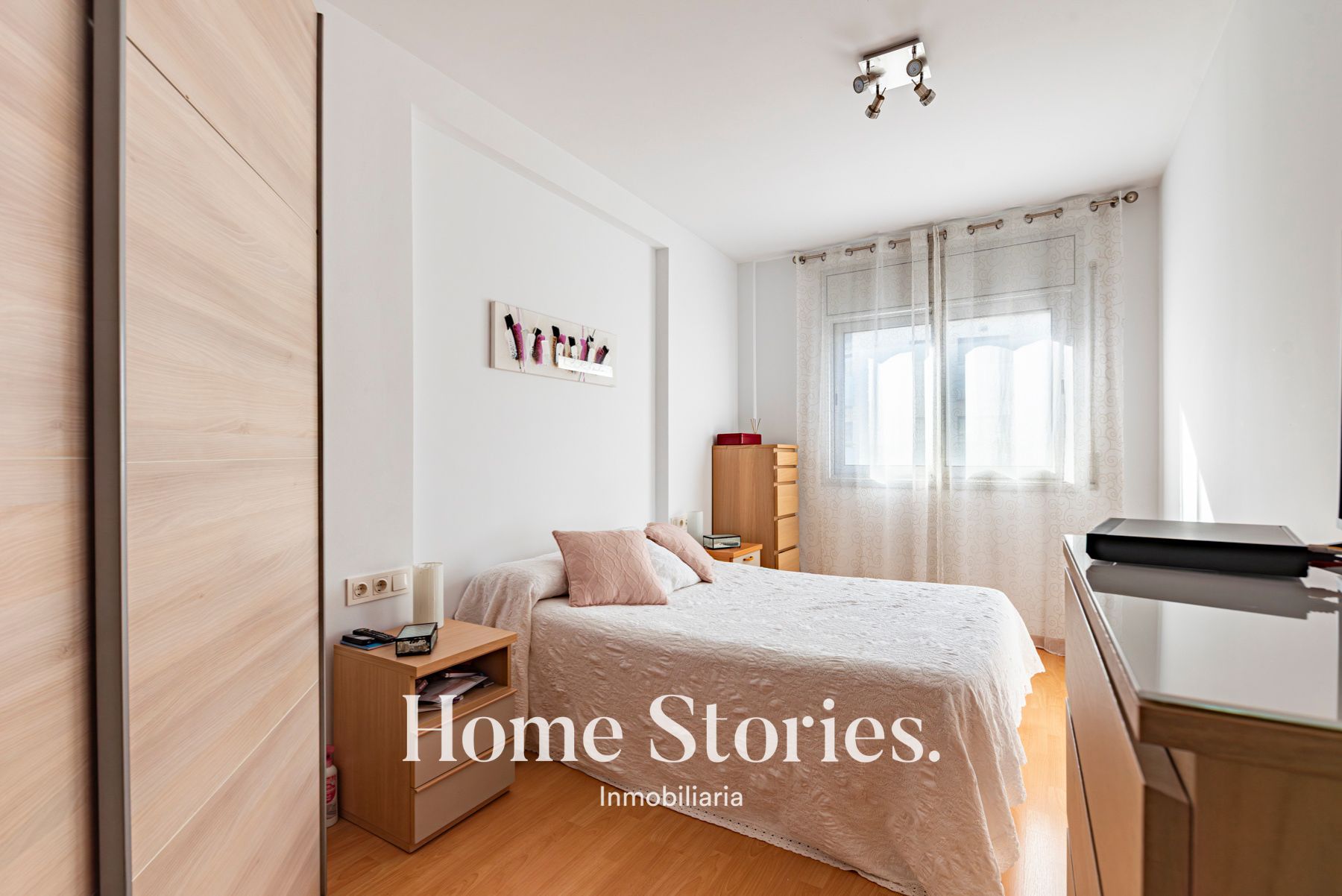 El piso dispone de 63 m² construidos muy bien aprovechados, con una distribución funcional: dos dormitorios (uno doble y otro individual), un salón-comedor con acceso a un pequeño balcón, cocina americana y un baño completo. Se conserva en muy buen estado y destaca por su luz natural.