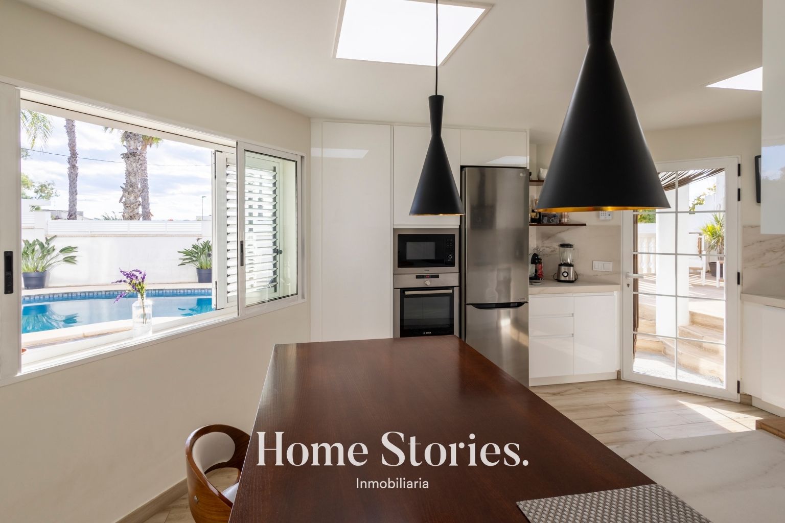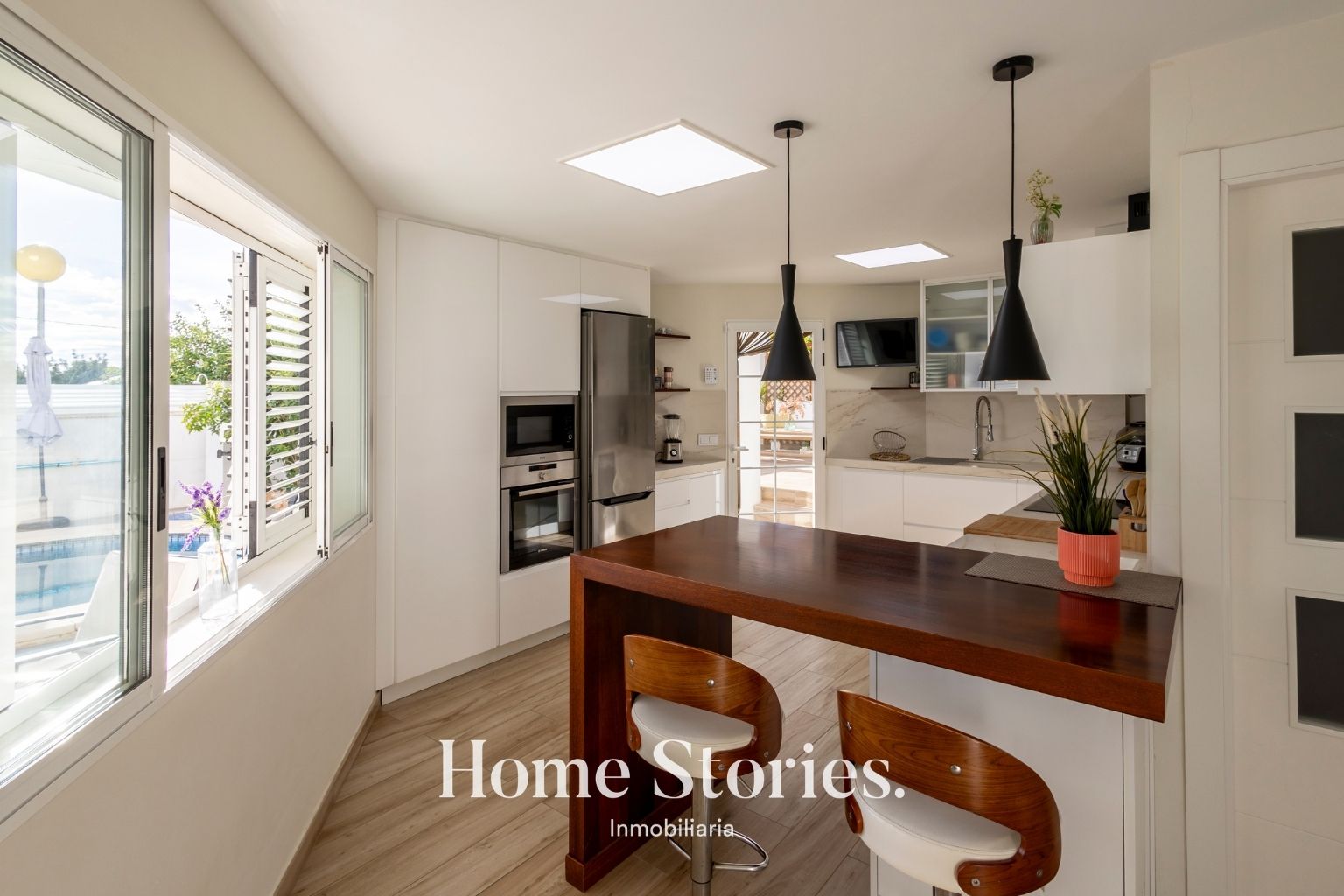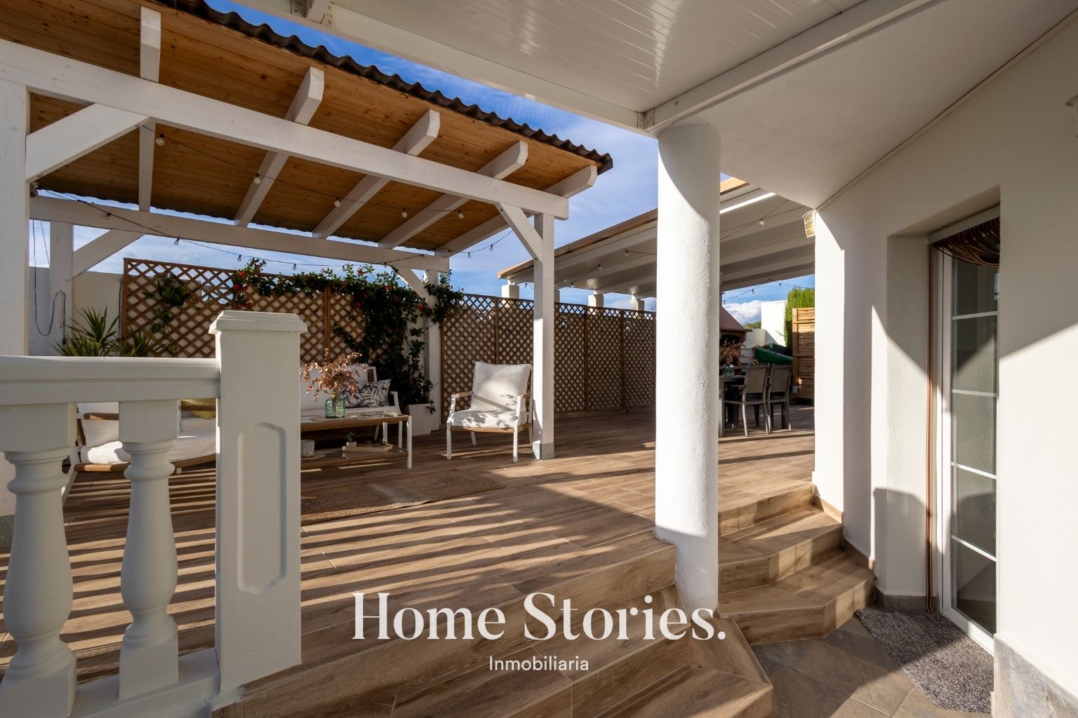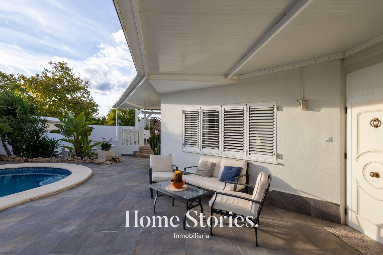 Fuera, mi piscina brilla bajo el sol, rodeada de una zona perfecta para disfrutar de los días de verano. Y mi paellero independiente está listo para reunir a familiares y amigos en torno a una buena comida y las mejores risas.