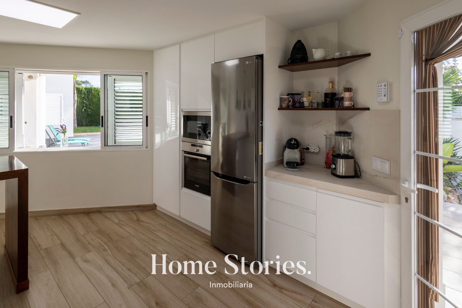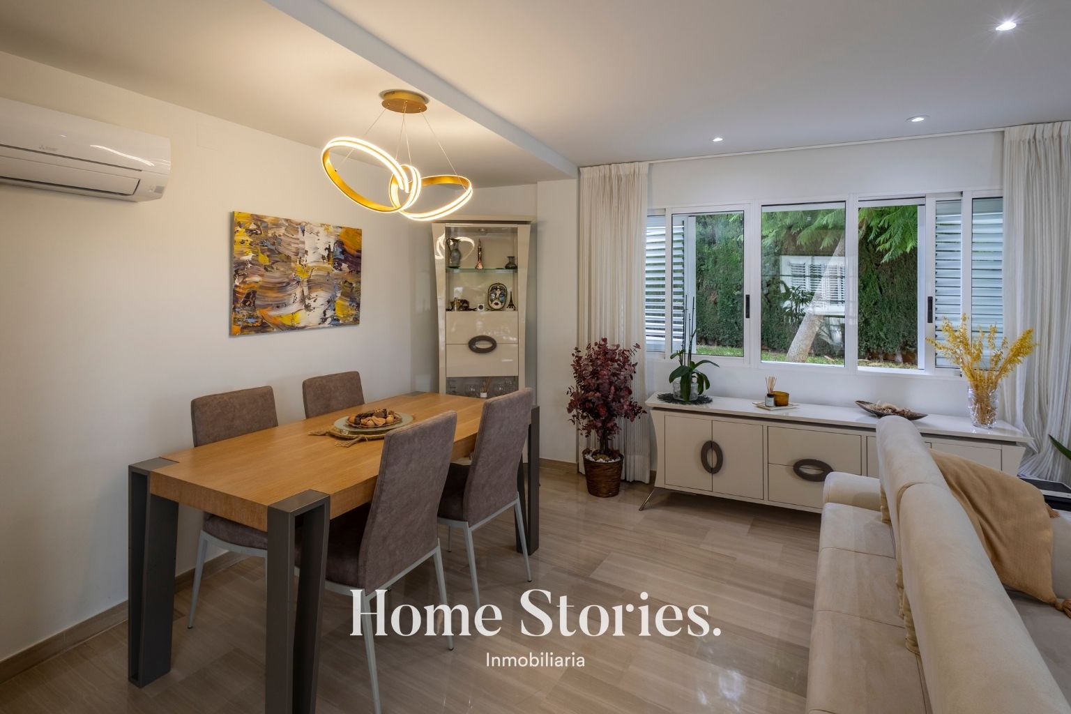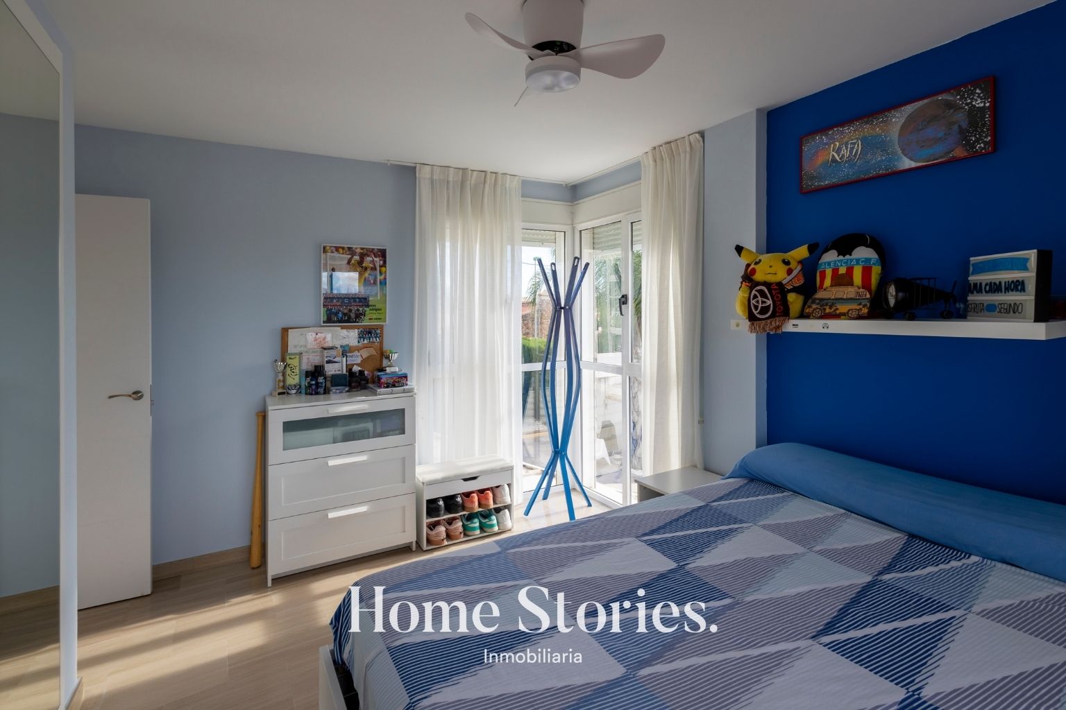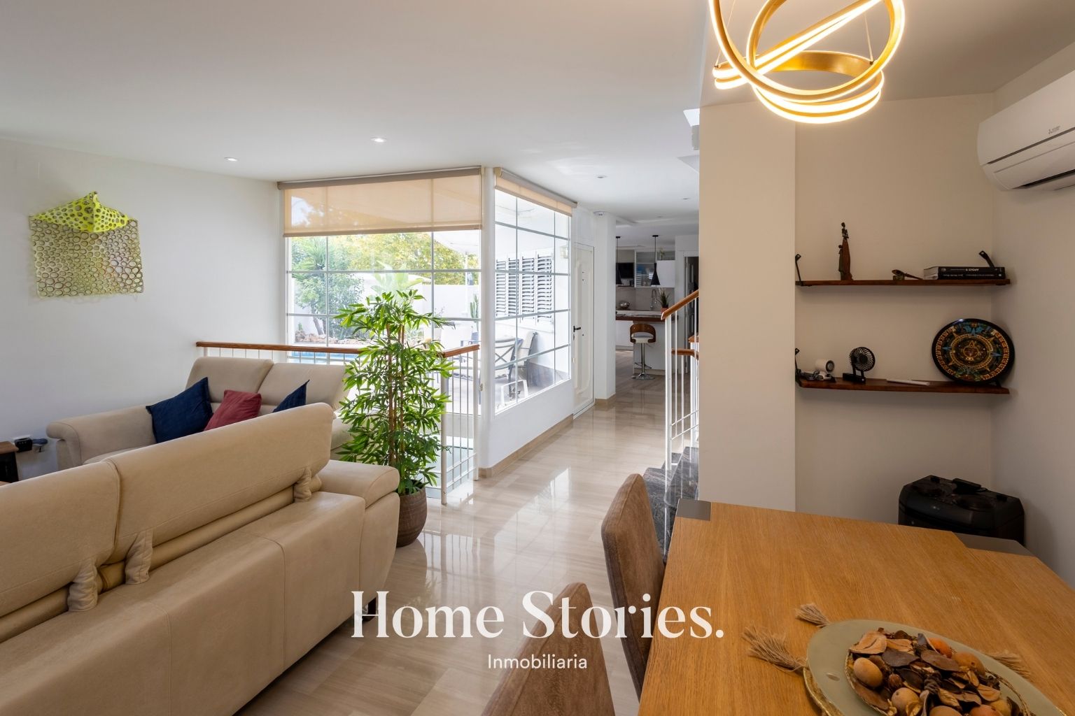 Fuera, mi piscina brilla bajo el sol, rodeada de una zona perfecta para disfrutar de los días de verano. Y mi paellero independiente está listo para reunir a familiares y amigos en torno a una buena comida y las mejores risas.